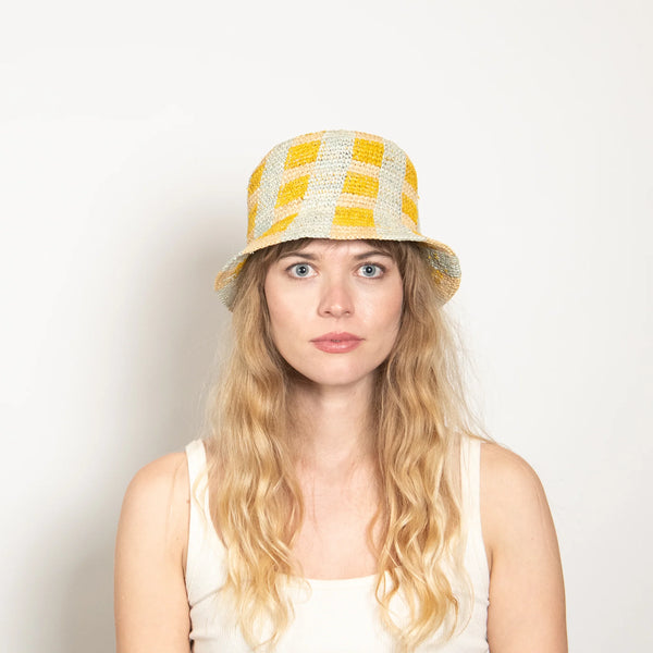 The Chrissy hat in Blue Gold by Wyeth dazzles with a handcrafted gold swirl pattern that adds a splash of sparkle and personality. This playful design turns heads and brings a touch of fun elegance to your look, making it the perfect standout piece for any occasion.