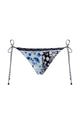 The Alegria Bikini Bottom in Batik by Agua Bendita combines eco-friendly fabric with delicate handmade straps that take hours to perfect. Its layered blue and beige batik-inspired print adds a fun, artisanal touch. Adjustable ties make finding your perfect fit a breeze, while the Latin coverage offers a playful yet flattering style for any sunny adventure.