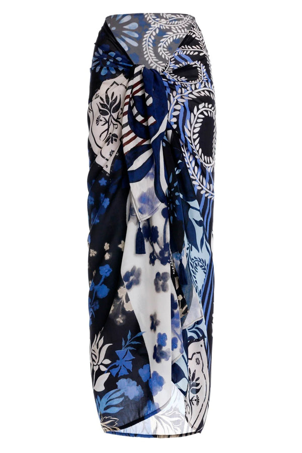 The Marine Pareo Cover Up in Batik by Agua Bendita is your new go-to for beachside fun and beyond. Featuring a bold blend of deep blues, crisp whites, and vibrant florals, this versatile piece lets you switch up your look—wear it as a skirt, dress, or top. Handmade tassels add a playful, artisanal touch, while its generous size ensures comfort and style in every wear. Effortlessly chic and endlessly fun, it’s the perfect companion for sun-soaked days and spontaneous adventures.