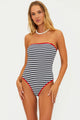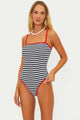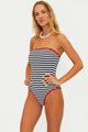 Get ready to turn heads with the Amber One Piece in Indigo Midnight by Beach Riot! This unique design features removable and adjustable straps, providing versatile wear for every body type. Enjoy moderate coverage and a flattering high leg cut.