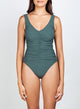 Dive into understated elegance with the Eloise V-Neck Tank in Cypress by Karla Colletto! This playful one-piece swimsuit features textured pique fabric and a flattering V-neckline that turns heads without trying too hard. With full support and moderate coverage, you'll feel confidently carefree whether you're splashing in waves or lounging poolside.