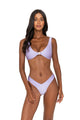 The Vada Bottoms in Lilac by FAE are your new go-to for turning heads. This high-cut, seamless design delivers cheeky coverage with built-in lift and sculpt for a confidence boost. Asymmetrical paneling and a flattering V-cut front create an effortlessly stunning silhouette that works as hard as you do—whether you're lounging poolside or making waves.