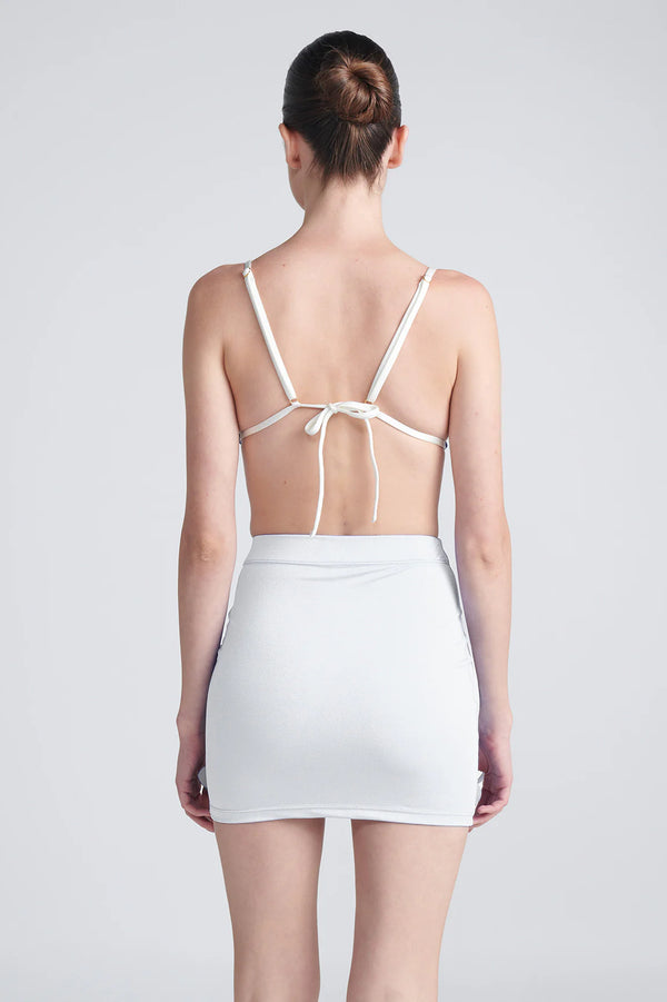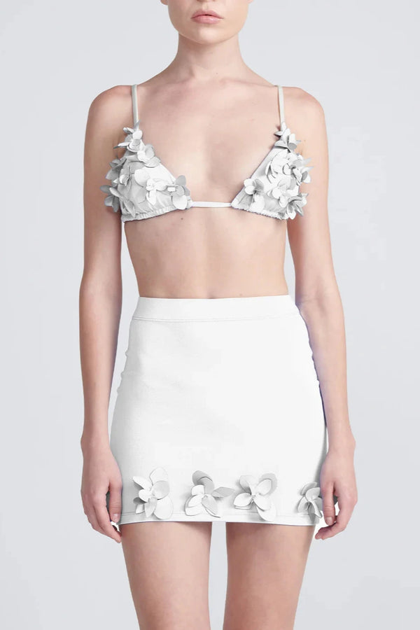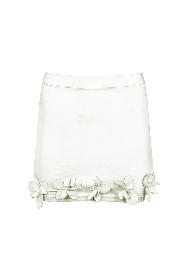 Be the center of attention in The Ivory Enigma Skirt by Ancora. This playful short skirt boasts individually laser-cut laminated flowers along the hem, creating a unique and quirky look. Show off your fun personality with this fitted piece.