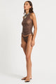 Our Claudia Tank Top in Rosewood Mesh by bond-eye is playful and flattering, designed to highlight your silhouette with medium-stretch mesh that moves with you. Perfect for beach days or evening drinks, its ruched detail adds a fun twist while pairing effortlessly with crinkle and bare swimwear. Embrace versatile style that takes you wherever summer leads.