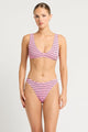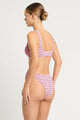 Get ready for summer with the Scout Crop in Pastel Pink Stripe! by BondEye This stylish top features a classic scoop neckline and wide shoulder straps for maximum support. The low scooped back adds a touch of playfulness while still offering medium to full support. Perfect for lounging by the pool or hitting the beach.