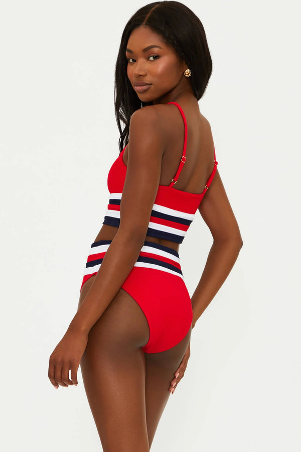 Rock the American Colorblock trend with the Mae Top by Beach Riot! Crafted from ribbed fabric, this top features adjustable straps and removable bra pads for a versatile fit. No need to sacrifice comfort for style!