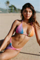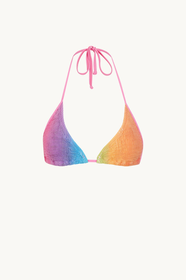 The Bells by Australian label Cleonie is the popular triangle top fit style The Bells features shoestring straps around the neck and back. Ophelia offers the Bells Kini top by Cleonie in the rainbow print