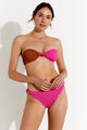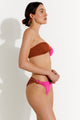 The Bora Bora brief by Australian swim label Cleonie is a mid-waist, high-side, knotted bikini bottom. This flattering swim bottom allows you to enjoy your sun-soaked fun and look good while doing it. Features moderate rear coverage.