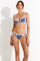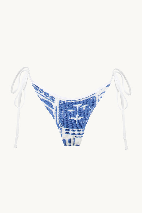 The Tini Brief by Australian label Cleonie is a side tie bottom in a Tropics print. This mid-waist , high cut bottom features white bind ties that sit delicately on the hips.