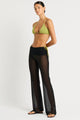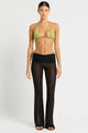 The ruched waist adds a touch of femininity, while the kick flare leg gives a flattering silhouette. Made from a medium-stretch mesh fabric, these pants provide both style and comfort. Slay in these funky pants, perfect for any occasion.