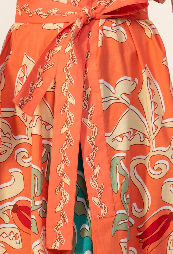 The Kimono Lea in Orange Ritual by Poupette St Barth is a cotton essential with full-length cut and graceful bell sleeves. Bold front placket styling meets a detachable belt with loops—mix and match your vibe however you want. Lightweight, versatile, and ready for anything.