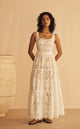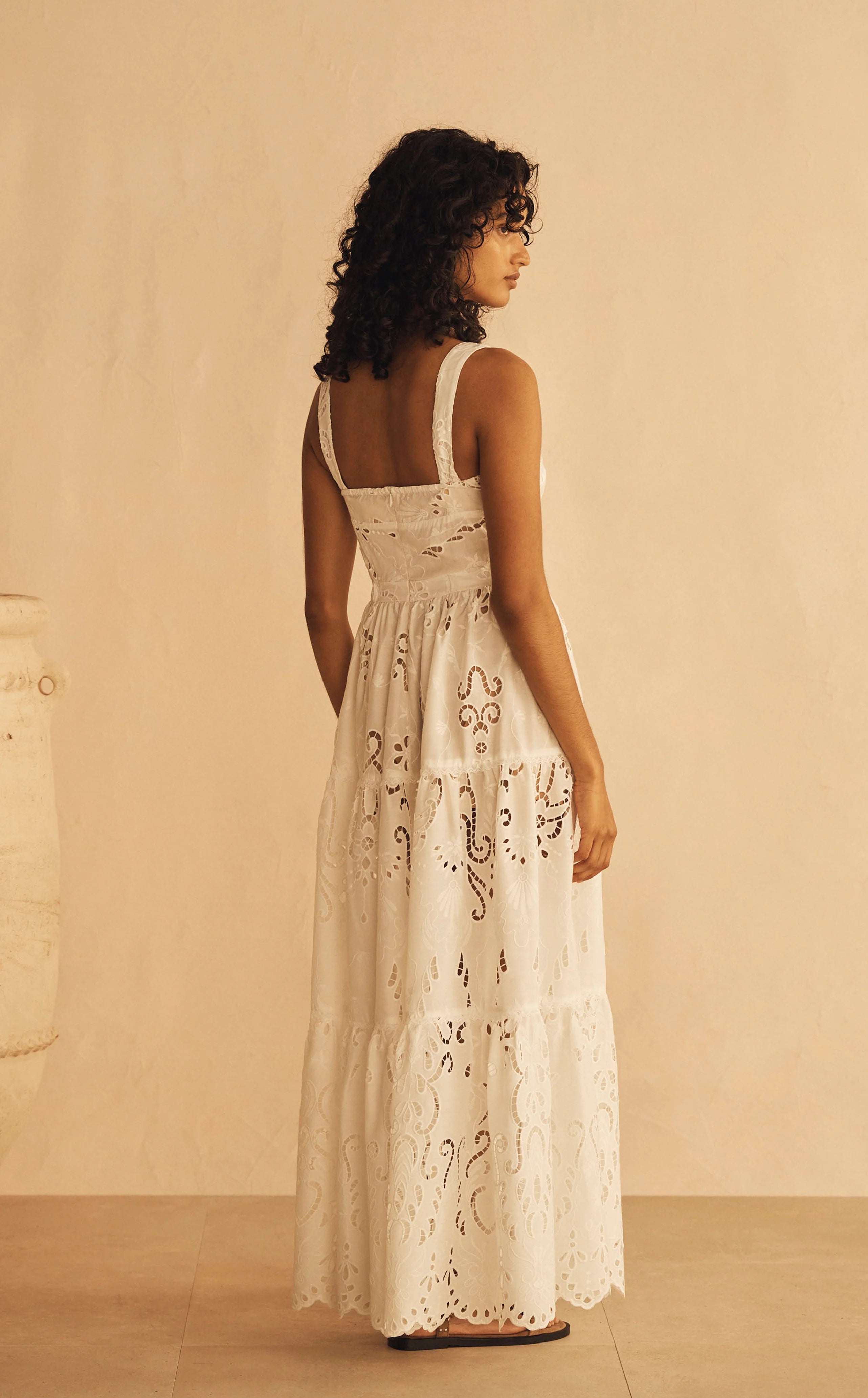 Slip into effortless elegance with the Lace Panelled Maxi Dress by Aur Ocea—a dreamy eyelet cotton creation that's equal parts romantic and refreshingly breezy. The fitted bodice hugs in all the right places before cascading into a softly gathered tiered skirt with a charming scallop hem. Wide adjustable straps and a scooped neckline keep things comfortable and flattering, while the lightly elasticated waist ensures a perfect fit every time. Whether you're heading to a garden party or a sunset celebration, this sleeveless stunner delivers timeless style with a playful twist.