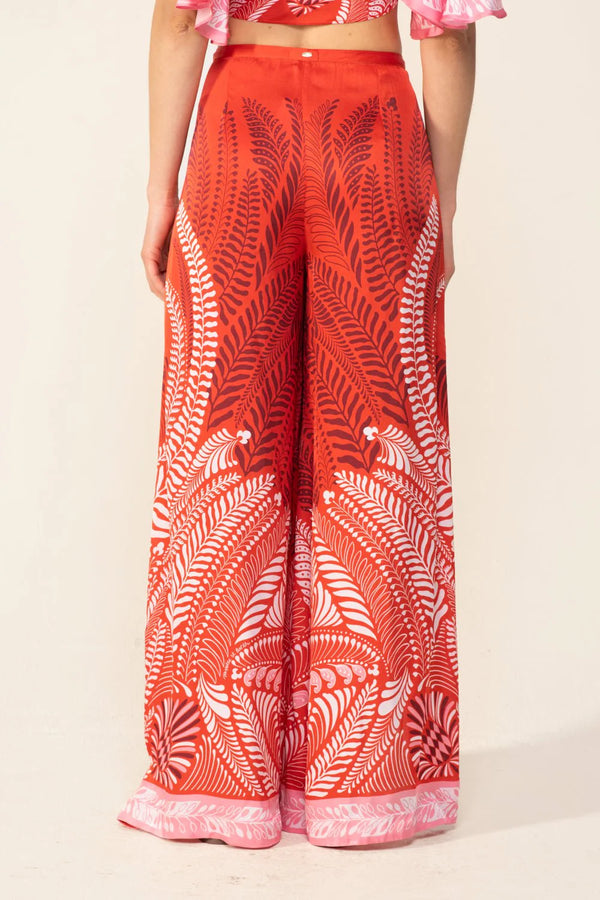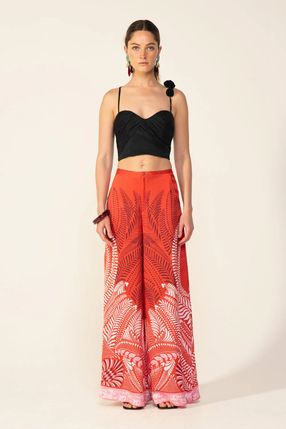 The Pant Clea in Orange Oolong by Poupette St Barth is crafted from sumptuous viscose satin, these pants are your new go-to for looking put-together. A charming shell-shaped metal button pairs with a zip closure for easy wear, while side slits let you move with confidence. Bonus: functional side pockets because style shouldn't mean sacrificing practicality.