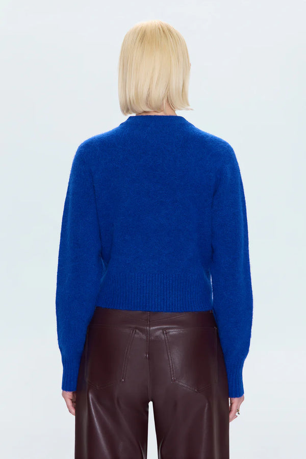 Meet the Sara Sweater in Azure by Pistola: a playful twist on a classic crewneck. This cropped sweater brings shrunken style to life with modern, intentional proportions that instantly elevate any outfit. Perfect for adding a fresh, fun vibe to your look.