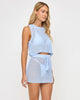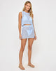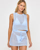 The Sander Skirt in French Blue is a playful crochet knit mini skirt featuring a charming tie at the waistband. Perfect for easy, breezy style, it pairs effortlessly with the matching Sander Top for a fun, coordinated look.