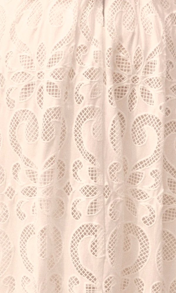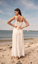 Getaway in style with the Maryl dress by Saylor. This chic and breezy midi boasts a delicate eyelet fabric, basque waist, boned bodice, and ribbon straps. Plus, with pockets included, you'll love this romantic white piece. Easy, chic, and pockets? Yes, please!