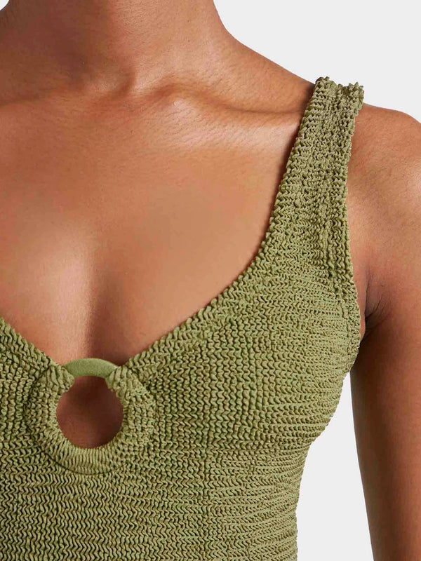 Celine Swim With Tonal Hoops Metallic Moss Coverage