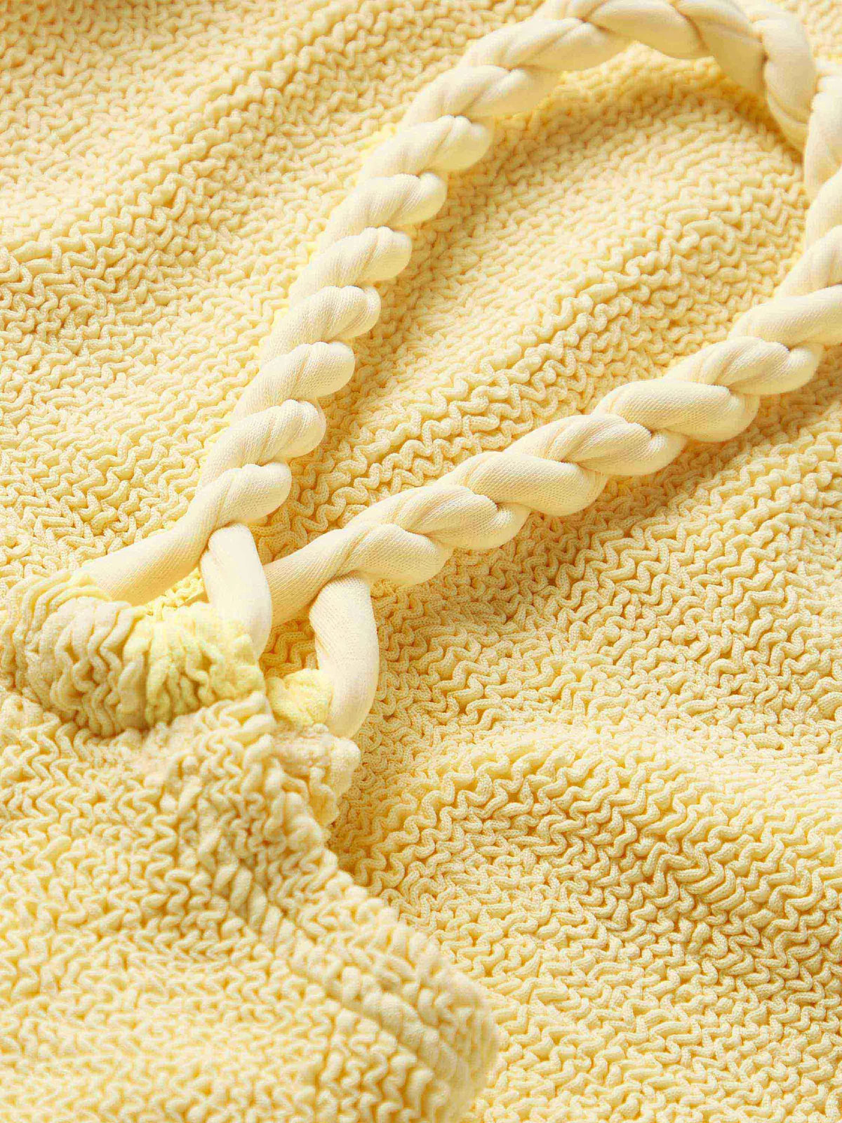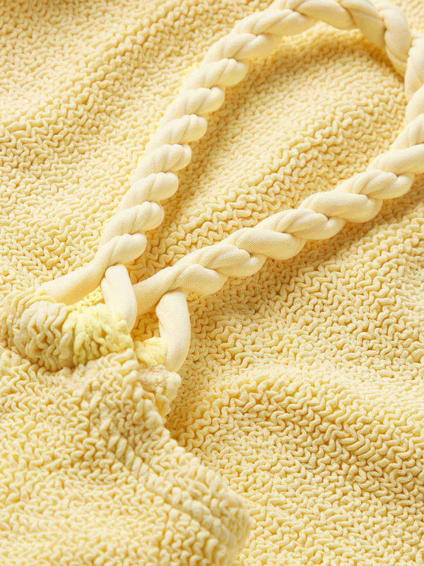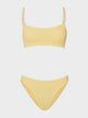 Elevate your swimwear collection with the Phoebe Underband Bikini in Butter by Hunza G. This versatile piece features distinctive twisted strap detailing that adds modern dimension to a timeless silhouette. The classic medium coverage briefs provide comfort and confidence, while the tonal design keeps the look effortlessly chic. Perfect for building a cohesive bikini capsule that transitions seamlessly from poolside to beach. Hunza G is sold as a set, with a one size fit.