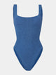 Inspired by 80s nostalgia, the Square Neck Swim in Metallic Denim by Hunza G is the timeless essential every collection needs. This iconic silhouette features a distinctive square neckline that flatters and commands attention, while the shimmering metallic denim fabric adds modern edge to a retro-inspired design. Versatile enough for poolside lounging or beach days, it's the one piece that transcends trends. Make it your go-to swimsuit staple.