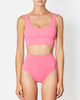 The Contour High Waist Pant in Cadillac pink by It's Now Cool is shape wear inspired with a soft and wide waistband for comfort. The compression Lycra with non roll satin edges keeps this bottom in place.