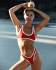 Take a trip down memory lane with the 90s Duo Crop Top in Red & White Contrast. This playful and sporty crop top features a scoop neck, matte lycra fabric, and a low cut back. But what sets it apart is the contrast bind and uplifting under band, providing a supportive and flattering fit. From the brand It's Now Cool.