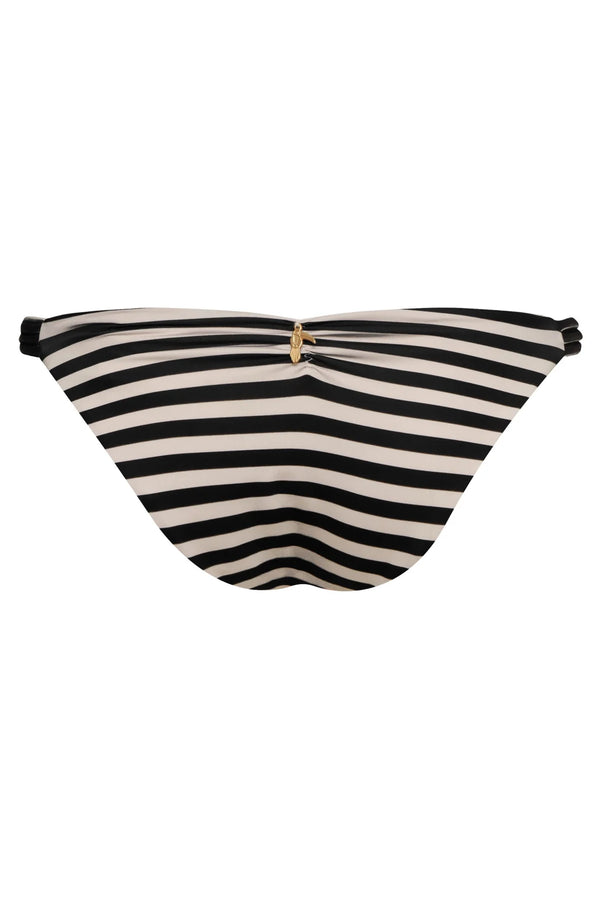 Dive into fun with the Potosi Bikini Bottom in Black & White Stripes by Juan De Dios! Its sleek, low-rise fit and delicate pleated sides add a playful twist to classic style. Reversible for double the looks, this premium swim fabric piece promises a flattering silhouette and comfy wear all day long. Perfect for mixing, matching, and making waves!