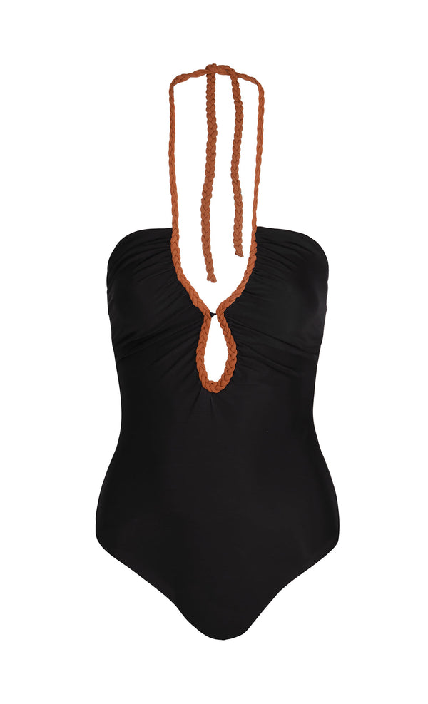 The Saint Tropez One Piece by Colombian designer Juan De Dios, boasts a timeless and elegant silhouette. Its flattering V neckline, peekaboo cutouts, and adjustable braided straps make it the perfect choice for a stylish summer look.