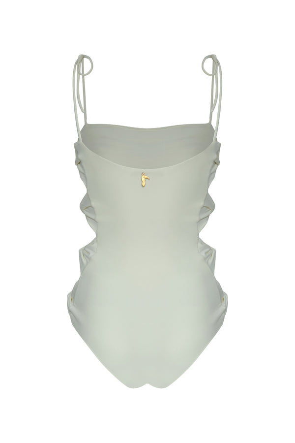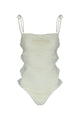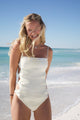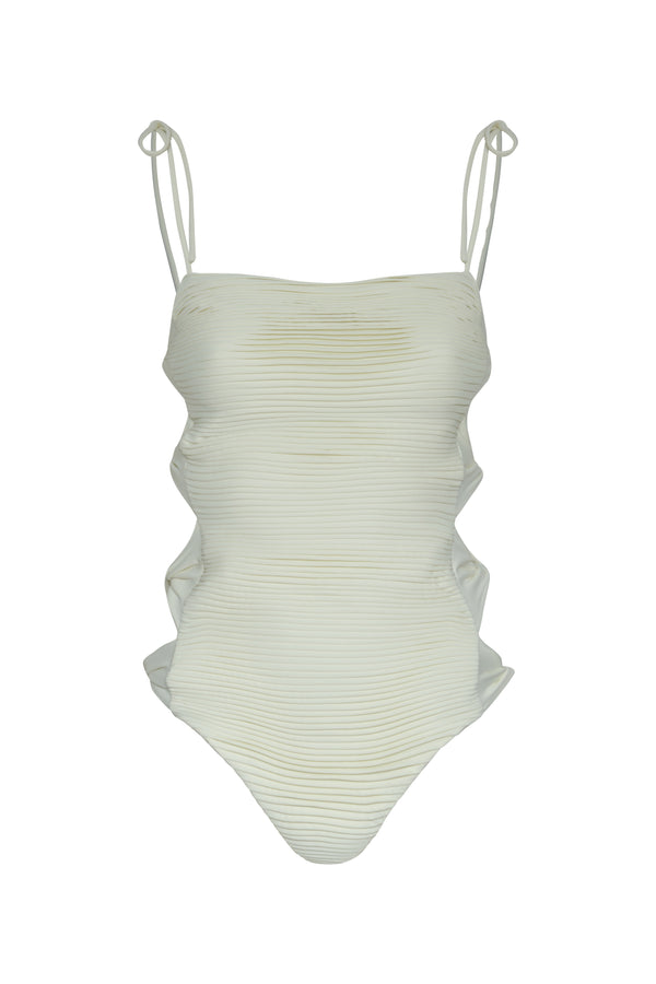 Introducing the Tejada Pleated One Piece by Juan De Dios in Ivory. This feminine silhouette boasts intricate side twist details and an impeccable fit. You'll feel confident and stylish in this one-piece, making it the perfect addition to any beach or pool day.