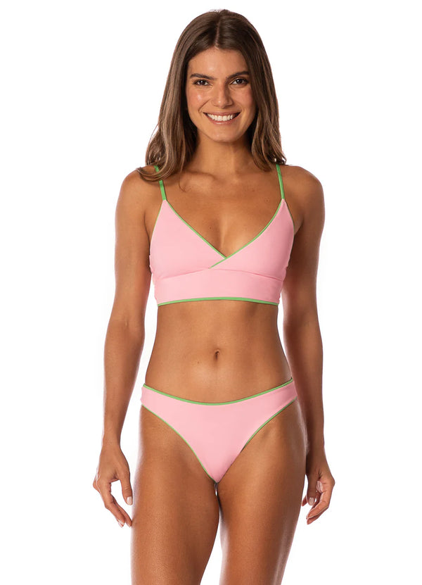 Splash into vibrant fun with the Sublimity Regular Rise Classic Bikini Bottom in Emerald Brocade by Maaji. This reversible hipster features one side in a lush green and the other in a playful pink, letting you switch up your style in a snap. With classic coverage and a flattering fit, it’s perfect for sun-soaked days and endless beach adventures.