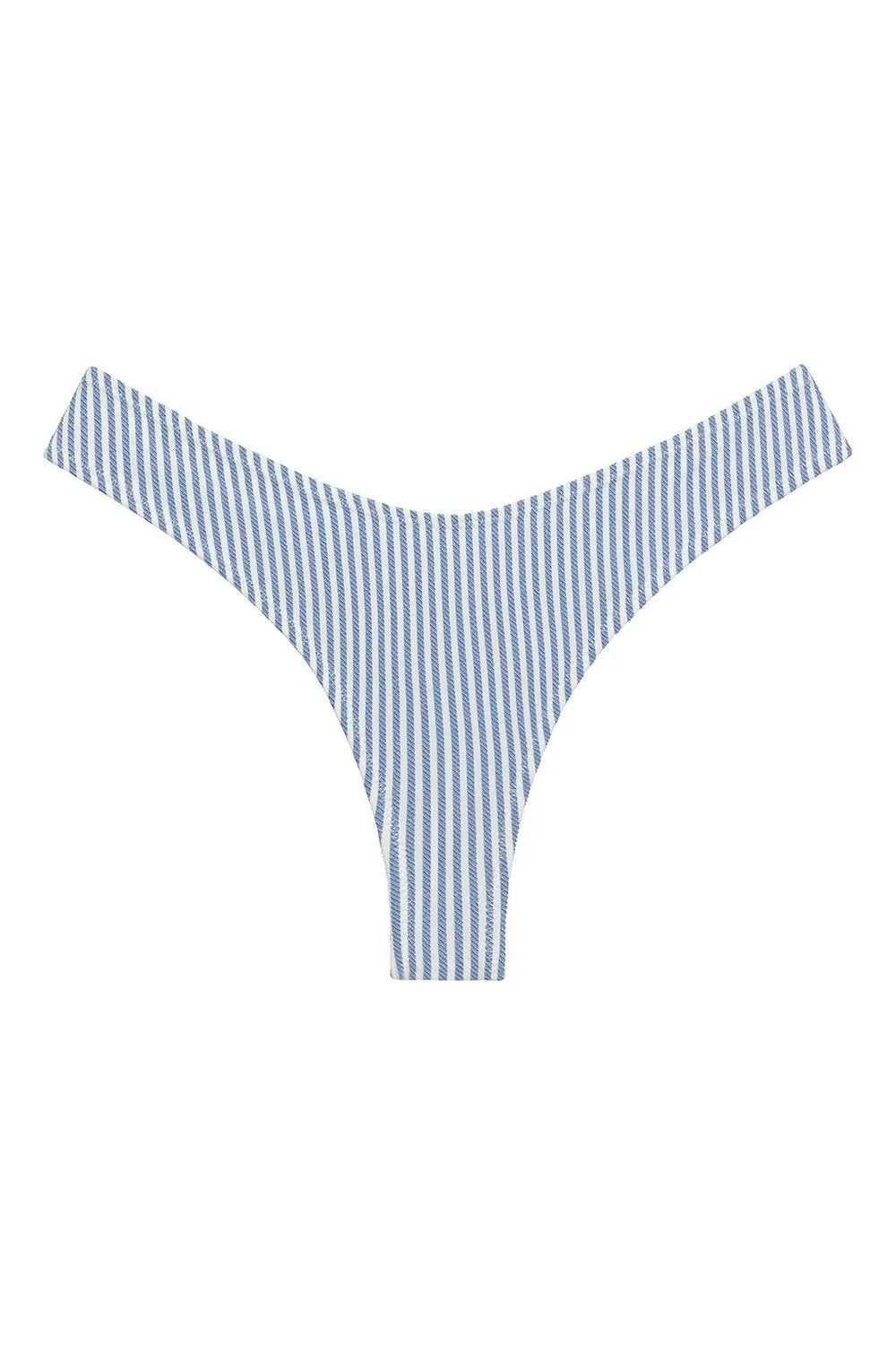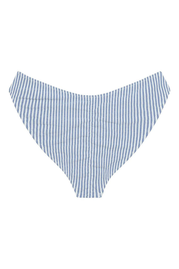 Dive into confidence with the Lulu bikini bottom by Montce, where playful style meets practical coverage. This mid-rise beauty features a flattering high-cut design that elongates your legs while the full coverage keeps you secure through every splash and sunbathing session. The classic blue stripe with signature zig-zag stitching adds a touch of personality to your swimwear rotation. Perfect for those who want coverage without compromising on cute.