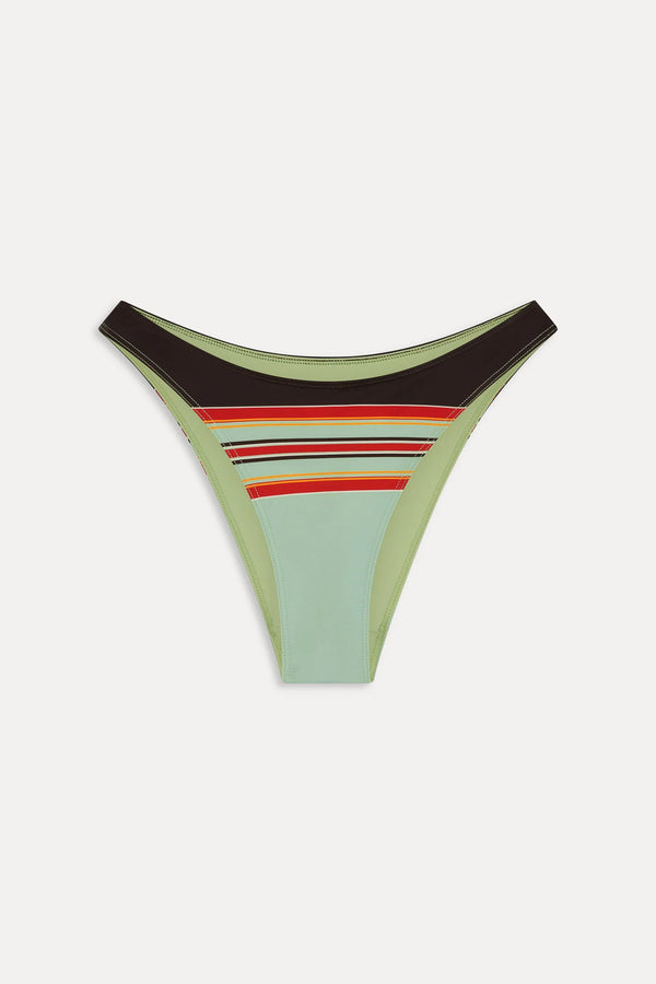 Slip into the Dove Striped Bikini Bottom by Frankies Bikinis and transform your everyday into a mini vacation. Featuring a flattering silhouette with timeless striped detailing in Desert Dusk, this bottom delivers the perfect balance of classic coverage and modern flair. Whether you're lounging poolside or catching waves, you'll feel confident and comfortable.