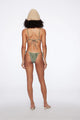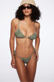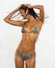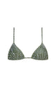 The Equator Top in Olive Guinea by Tropic of C is a versatile classic triangle top designed for customizable comfort. Fixed shoulder straps and cups adjust along the drawstring to dial in your ideal fit, or detach and tie at the neck for a different look. Crafted in digitally printed fabric with full lining for coverage and all-day comfort.