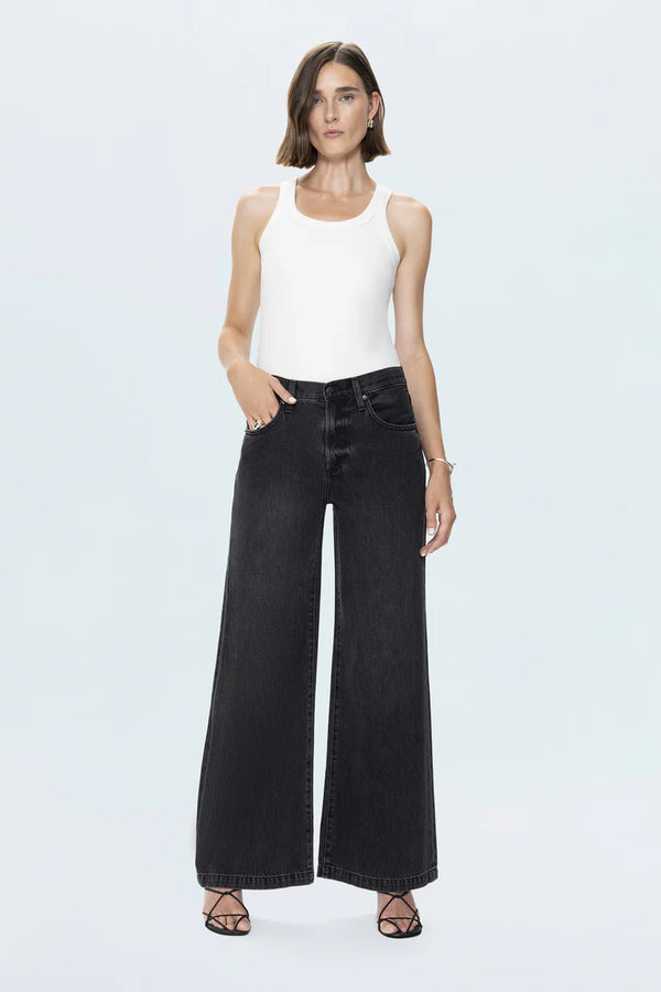 Slip into the Jadyn Low Slung Palazzo Jean in Zen by Pistola and embrace laid-back luxury with a playful twist. Sitting low on the hips, these jeans feature a relaxed palazzo leg and a full-length 32" inseam that moves effortlessly with you. The low-slung waist adds a modern edge, while the wide leg opening creates a graceful, contemporary flow. Made from lightweight rigid denim, they hold their shape beautifully without sacrificing comfort. Finished in a deep black wash, Zen exudes serene sophistication that’s both grounded and elevated—perfect for effortless style with a fun vibe.