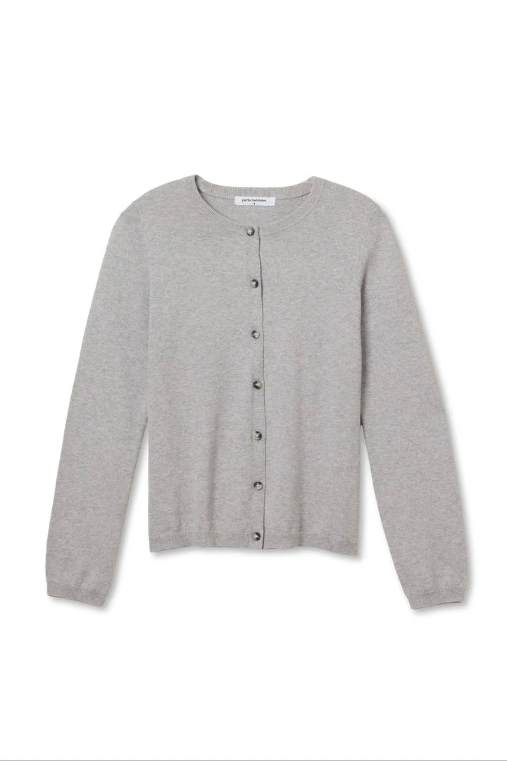 Meet the Moira—your new wardrobe MVP. This fitted cardigan by Perfect White Tee is spun from our luxe cotton-cashmere blend, delivering cloud-soft comfort with an effortlessly polished vibe. Those full front buttons? They're your ticket to infinite styling freedom. Throw it over a simple tee, layer it with your favorite denim, or let it shine solo. Heather grey never looked so good.