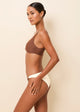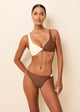 The Perrie Bikini Top in Brule Coconut features a fresh color-blocked design with a fun front tie detail that lets you adjust your fit just right. Its supportive back combines comfort with a sporty edge, making it perfect for beach days where flirty style meets active vibes. Embrace the playful spirit of summer in this chic and versatile top.