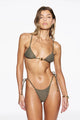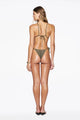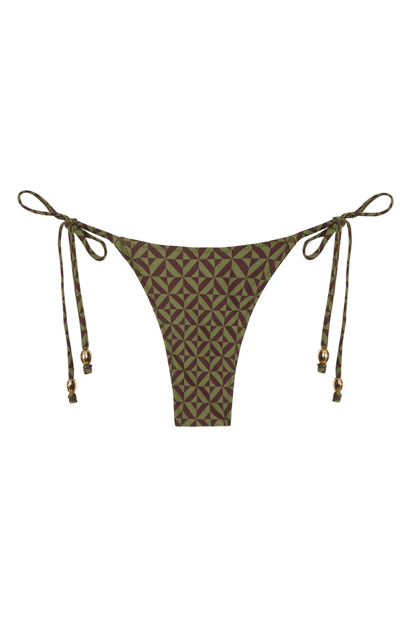 The Praia Bottom in Cesta, a green geometric print by Tropic of C, delivers minimal coverage with effortless style. Delicate gold-toned bead detailing adds a touch of luxury, while adjustable side ties let you customize the fit to perfection. Designed for those who want confidence and comfort in equal measure.