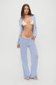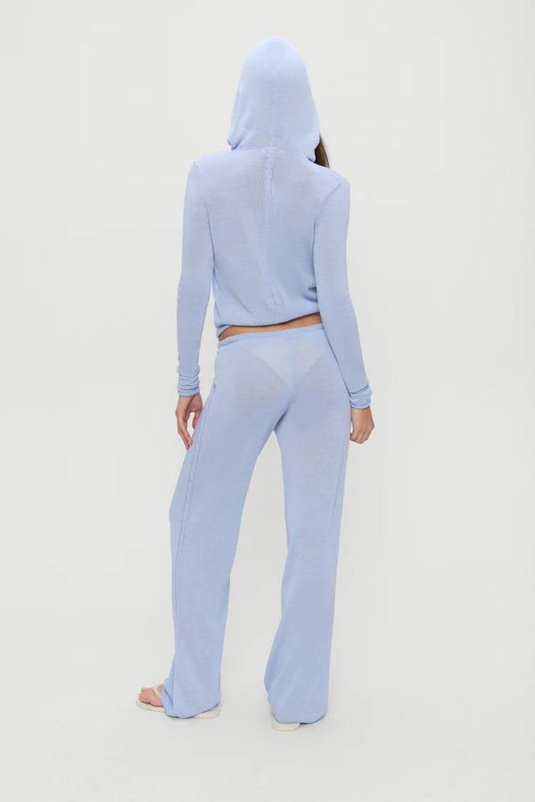 Embrace effortless beach style with these Ela Low Rise Knit Pants in Sleepy Spring. Crafted from Frankies Bikinis' signature soft Beach Knit fabric, these pants feature a subtle sheer quality perfect for layering over your swimwear. The elastic waistband with drawstring ensures a comfortable, adjustable fit, while the iconic cable knit design running down the sides adds visual interest. The low rise silhouette delivers a relaxed, contemporary look ideal for transitioning from sand to seaside gatherings.