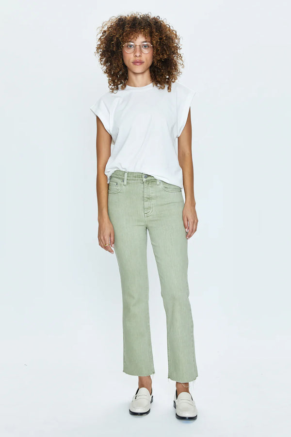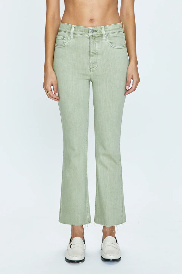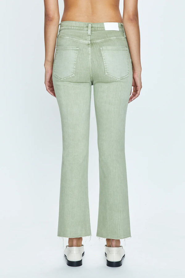 Elevate your denim game with a spiritual cleansing in the Pistola Lennon Crop Boot. This quirky bootcut silhouette features a high rise waist and cropped ankle hem, made from our signature comfort-stretch denim. The earthy, green Sage Snow wash adds a touch of nature to your wardrobe.