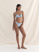 The Staple Pant by Peony is the perfect go to bikini bottom. This blue floral swim bottom provides moderate rear coverage with a versatile fit. The Staple Pant in Bluebell is designed to sit just abover your hip bones.