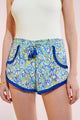 The Boxer Lulu short from Poupette St. Barth has a low-waist and ultra short fit with curved hemlines that are adorned with fringe. The waist is elasticized with a tasseled drawstring.