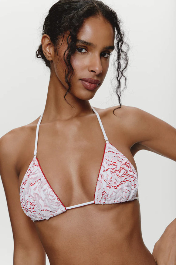 Nick Triangle Crochet Bikini Top Red Ribbon
