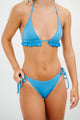 The Kristen Tie Side Bottom by Ophelia is a full coverage bottom with functional tie sides for a custom fit. It is offered in three colorways — solid ocean, violet with ocean ties and the beautiful floral print by Rebekah Steen of Goldfish Kiss fame.