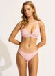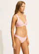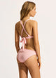 Indulge in ultimate comfort and style with the Daydreamer Multi Fit Longline Tri top by Seafolly in Dusty Pink. Lettuce edge detailing adds a touch of sophistication, while the removable cups provide shape and support. With a tie neck and back for fit versatility, this piece is perfect for those seeking both fashion and functionality.