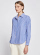 Add a touch of playful sophistication to your wardrobe with the Stripe Poplin Classic Shirt by Stateside. Featuring a classic white contrast collar and cuff, as well as a unique pocket detail, this shirt is perfect for any occasion. Available in Ryker print, blue and white pinstripe perfection.