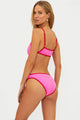 The Saffron Bottom in Electric Pink by Beach Riot features a low-rise design, full coverage, and contrast red binding. The textured fabric moves with you—whether you're catching waves or soaking up sun. Bold color, smart construction, pure fun.