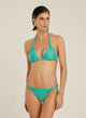 The Adjustable Halter Bikini top by Brazilian swimwear designer Lenny Niemeyer. This triangle bikini top features removable pads and sliding fabric loops that can be adjusted for more or less coverage. A flattering halter bikini style that ties around the neck and back. Made from soft buttery fabric that is biodegradable and offers SPF 50+ protection.