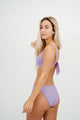 Ophelia is proud to introduce our long-awaited 'Avery' Demi Bra Bikini Top in 3 amazing colors – Ocean, Palm and Violet. After years of fitting women into swimwear of all kinds, we have designed a beautifully flattering top that will become your favorite. Softly covered underwire construction along with seaming in the right places gives a beautiful structure to this top. The shoulder straps are a comfortable width with adjustability for over-the-shoulder or cross-back styling. The back tie feature is the perfect way to ensure good fit. This top is designed for complete customization.