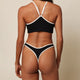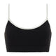 The Simple Sport Top by Montce is a flattering scoop neck, racer back style . This medium support top is designed to be worn for loungewear, light exercise or streertwear. Offered in black terry rib with cream binding.