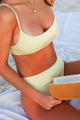 Effortlessly flaunt your style with our Blakely Bralette in Banana. This bralette style swim top features delicate adjustable straps and triple lining for ultimate bust support. Designed in 30A Florida beaches and made in Colombia.