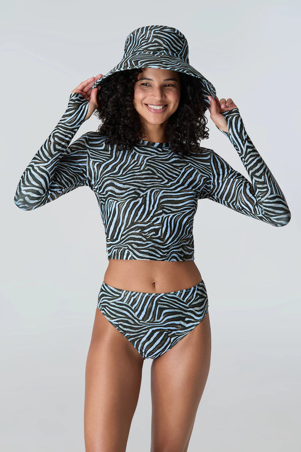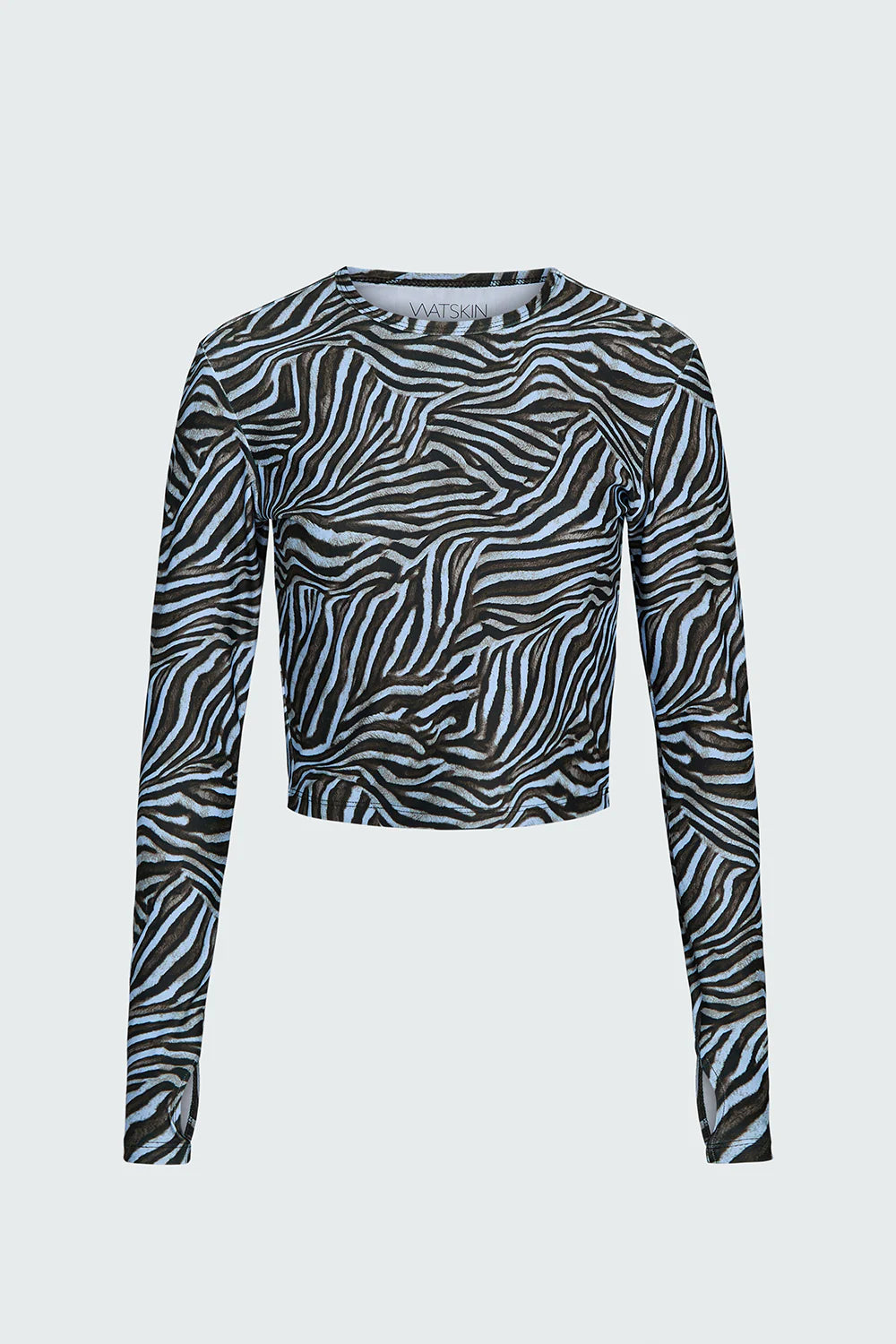 The Clara Tee in Blue Zebra is your go-to cropped crewneck rashguard by Watskin that hugs you just right and stops above the belly button. Made from stretchy, moisture-wicking fabric with UPF 50+ protection, it blocks 98% of UV rays, keeping you sun-safe whether you're lounging poolside or making a splash. Lightweight and fun, Clara adds a wild touch to your summer adventures both in and out of the water.